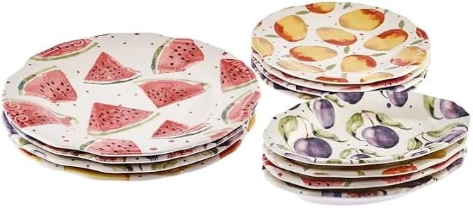 Karaca Tutti Frutti Service de table en faïence pour 4 personnes, 12 pièces, assiettes plates, assiettes de service, assiettes d'accompagnement, vaisselle quotidienne et spéciale, design unique