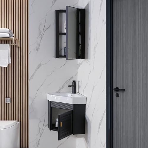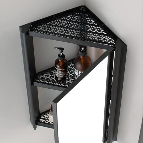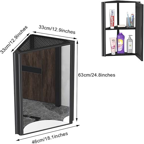 Armoire À Miroir d'angle De Salle De Bain, Armoire À Miroir Triangulaire en Aluminium Space, Casier De Toilette Mural - Gain De Place (Color : Black, S : 33 * 33 * 63cm)