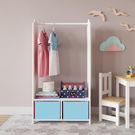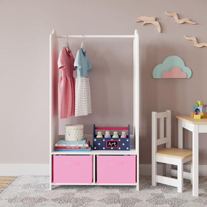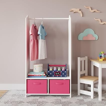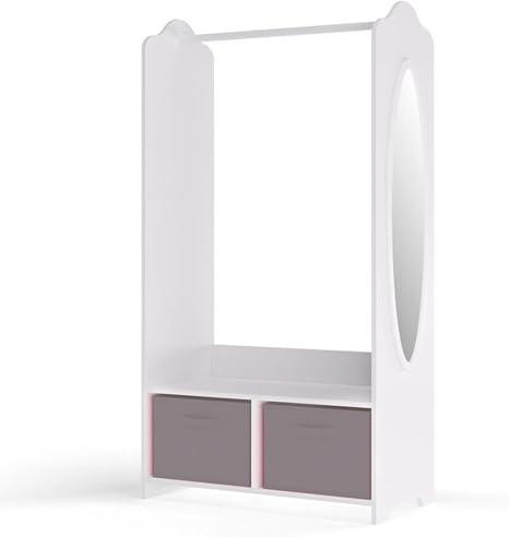 URBNLIVING Penderie à vêtements en bois MDF pour enfants avec étagères de rangement et miroir (rose foncé)