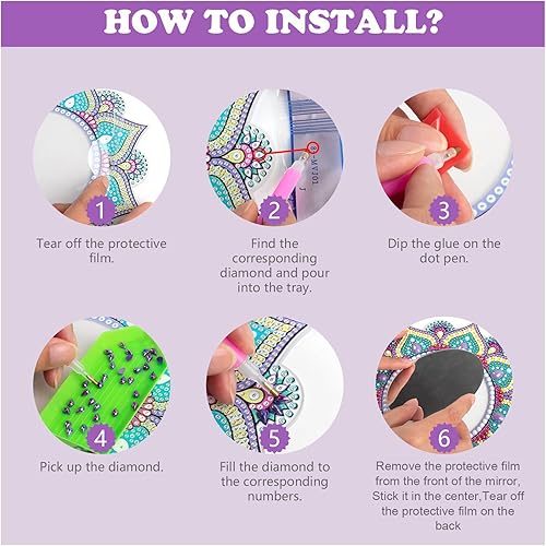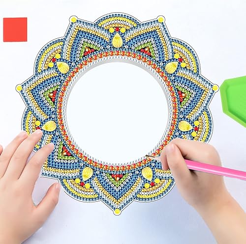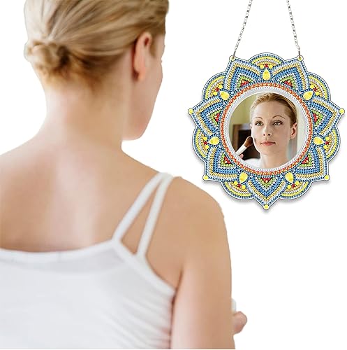 DCIDBEI Kit Complet Broderie Diamant Miroir Salle de Bain, 3.94 Inch Perle Diamant a Coller Fleurs,Miroir avec Cadre en cristal pour Salle de Bain, Chambre ou Dressing,Mandala