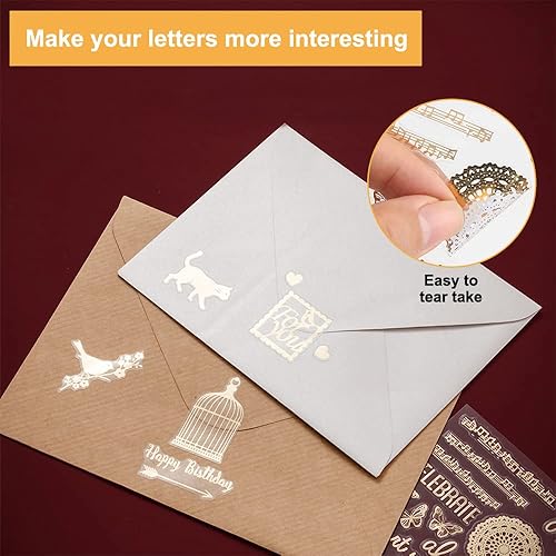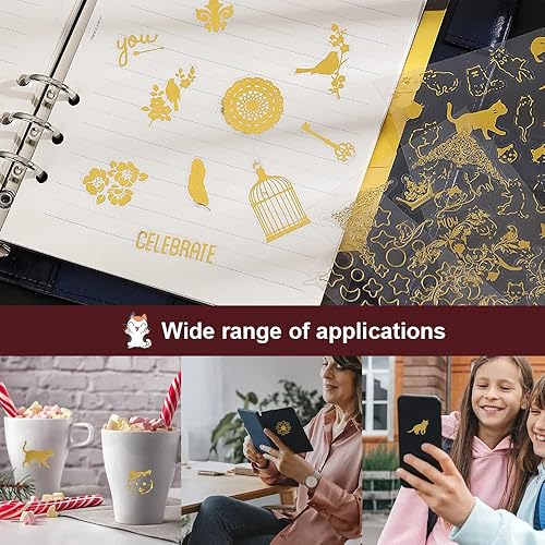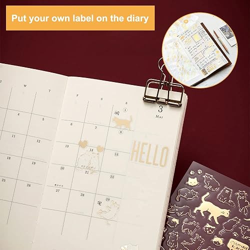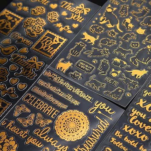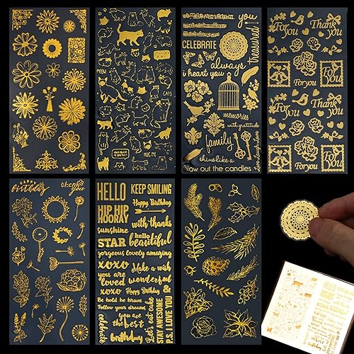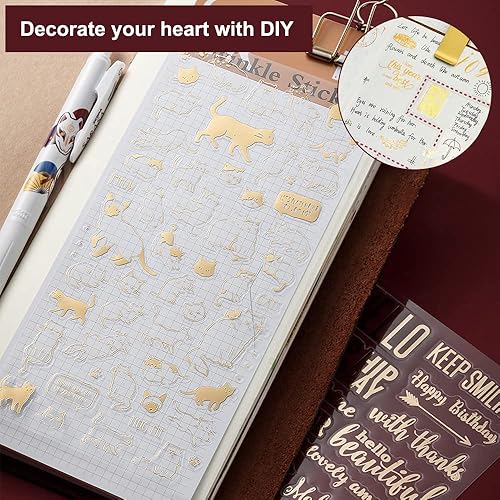 7 Pcs Scrapbooking Stickers Doré Autocollants Lettres PVC Papier Deco Autocollant Sticker Fleur Autocollants Décoratifs Stickers Aesthetic Vintage pour DIY Journal Album Photo-Chat Plante Feuille