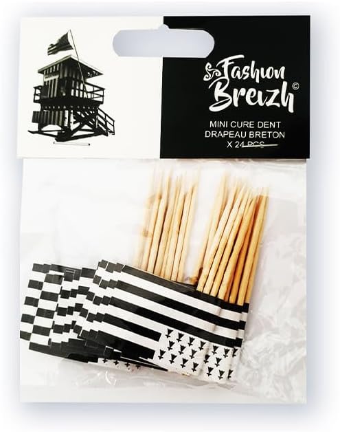 Cure-dent - Mini pique avec petit drapeau breton - En bois - Apéro - Bretagne