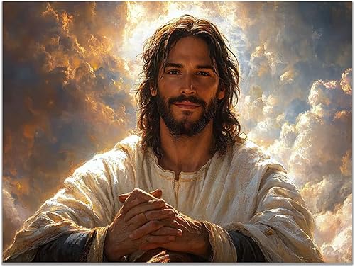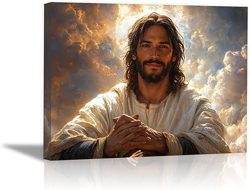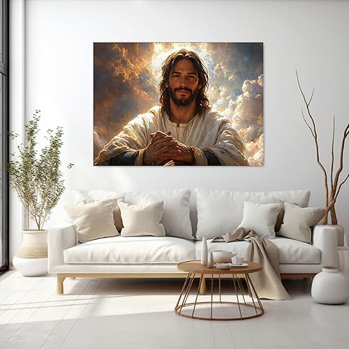 WIKEO Jésus Tableau Affiche Murale, Oeuvre moderne de Jésus ImpriméS D'Art Pour,Salle De Bain,Coucher,Murale,Salon,Impression sur toile Jésus Christ - 30x40cm Encadrée(blanc)