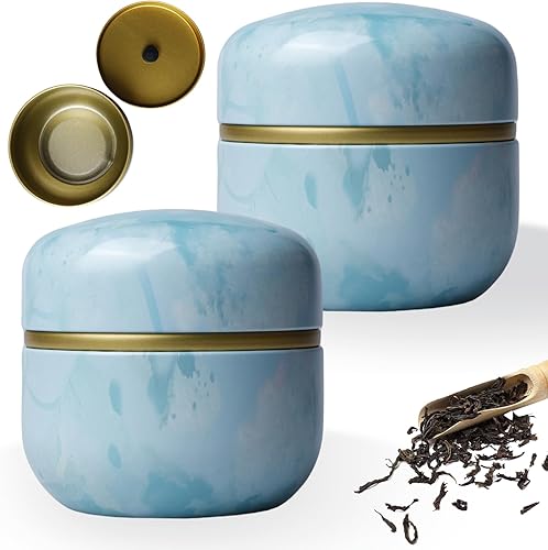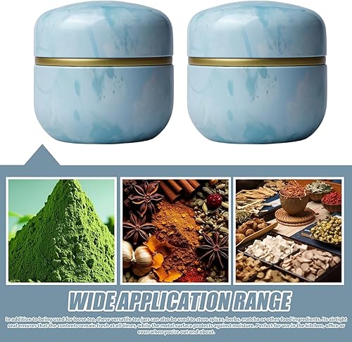 LEKEFETO Lot de 2 boîtes à thé rondes en métal pour thé en vrac, boîte à thé matcha avec couvercle, pot à épices pour aliments dans la cuisine (Φ8,5 cm)