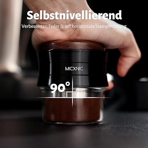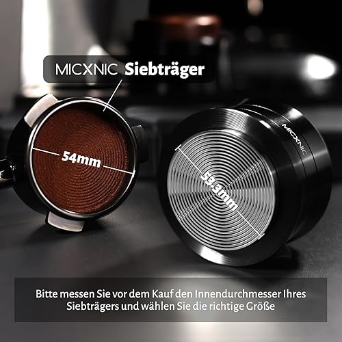 MICXNIC Tamper à café de 54 mm avec ressort amélioré pour porte-filtre de 54 mm, direction de tassage calibrée à 90°, tampon à expresso avec base ondulée en acier inoxydable pour Breville Sage