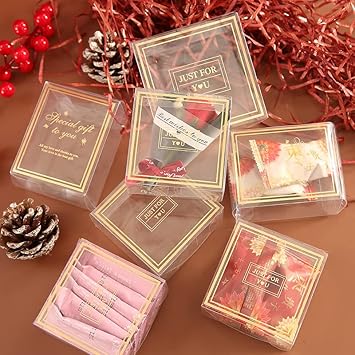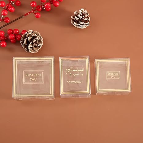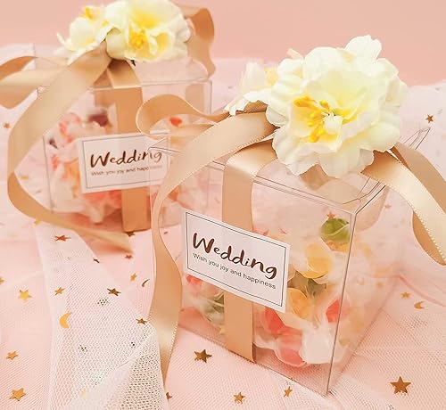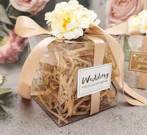 Lot de 50 boîtes à dragées PVC transparent 10,4 x 5,1 x 4 cm,Boîtes à dragées en plastique - Boîtes cubiques transparentes - Emballage individuel pour macarons, bonbons, mini fts, fête de mariage