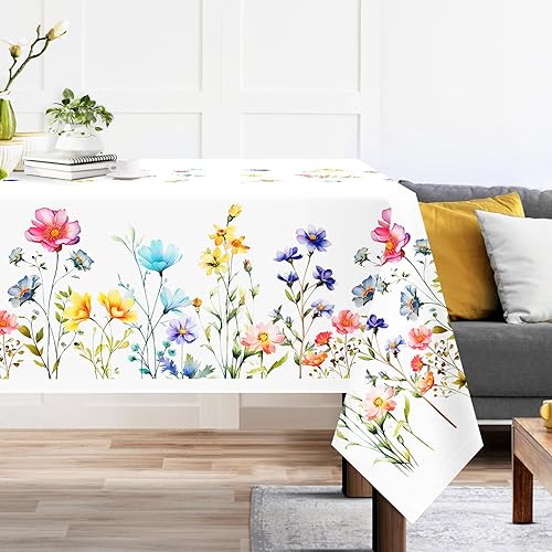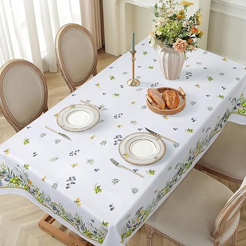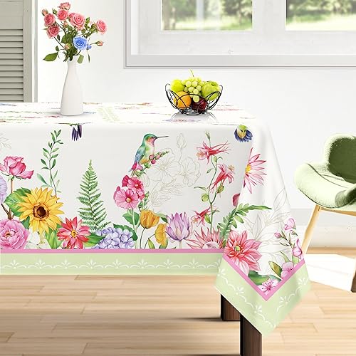 Arquiel Nappe De Table Fleur Oiseaux Rectangulaire, Nappes Feuilles Nappe Imperméable Anti-Taches Et Lavable pour La Cuisine Décoration Salon Printemps Été(140 X 180 Cm)
