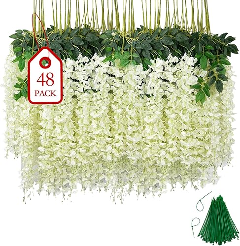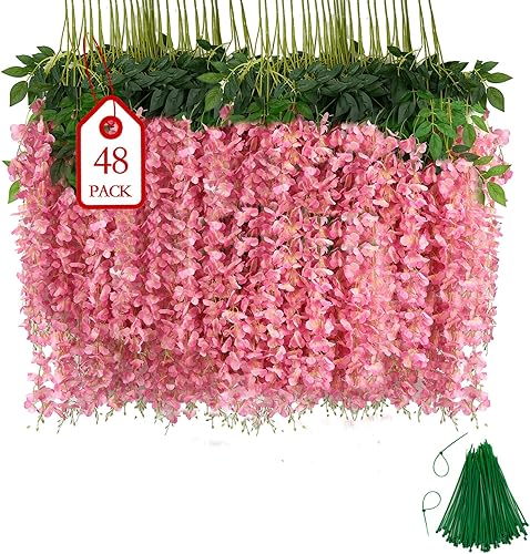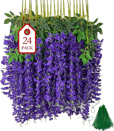 BIRDDIE 24 Pièces Fleur Artificielle Deco Glycine Fleurs Artificielles Tombante pour Décoration du Mariage Fête Jardin