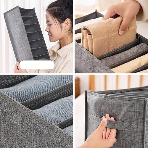 WPKD BLUEIY Organisateur de tiroir à vêtements, boîte de rangement multifonction pour sous-vêtements, pantalons, pour placard, chambre à coucher, design à 6 compartiments, tissu, 32 x 32 x 10 cm
