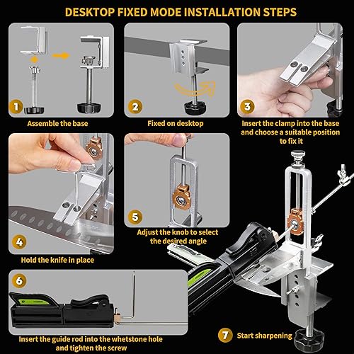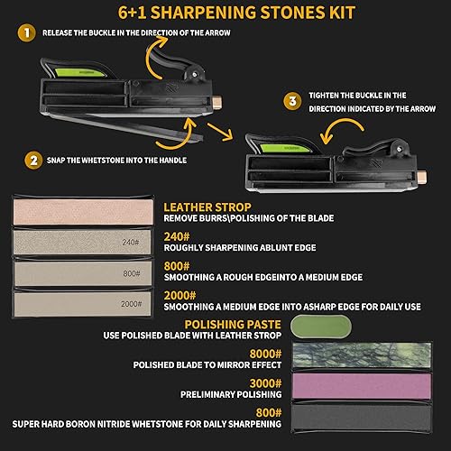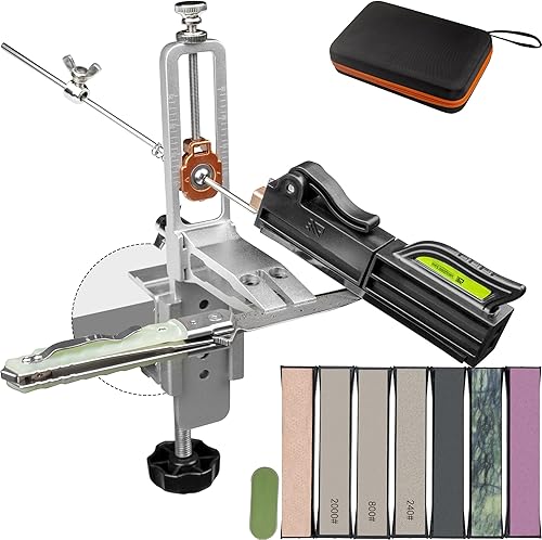 CWOVRS Aiguiseur de Couteaux avec angle de contrôle 15-30°, Affûtage Couteaux pour utilisation Intérieure et Extérieure avec Pierre Diamantée et Pierre Naturelle pour Cuisine, Camping, ect.