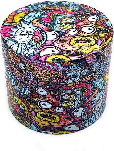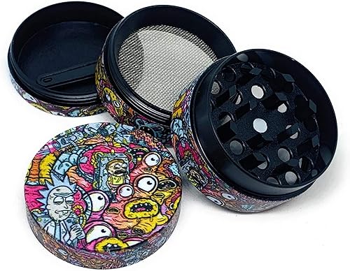 Grinder Rick et Morty 40mm en 4 parties moulin à épices poissons globuleux en zinc robuste broyeur d'herbes séchées avec sa petite spatule à pollen couvercle aimanté pour une fermeture parfaite
