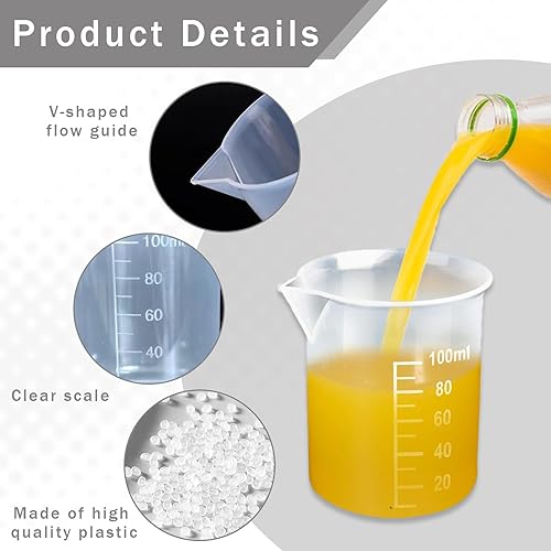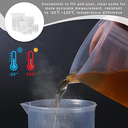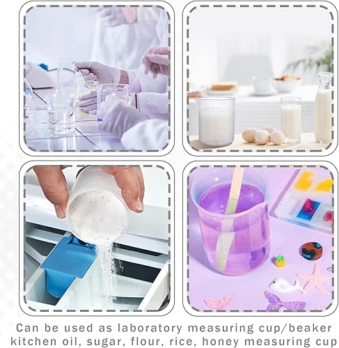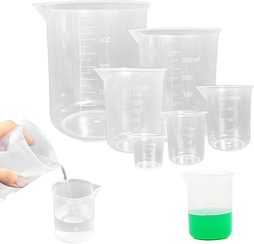 Lot de 6 verres doseurs en plastique - 25 ml, 50 ml, 100 ml, 150 ml, 250 ml, 500 ml, avec graduation pour bricolage, moulage, fabrication de bijoux, laboratoire, cuisine, détergent, produits chimiques