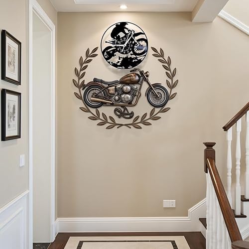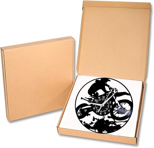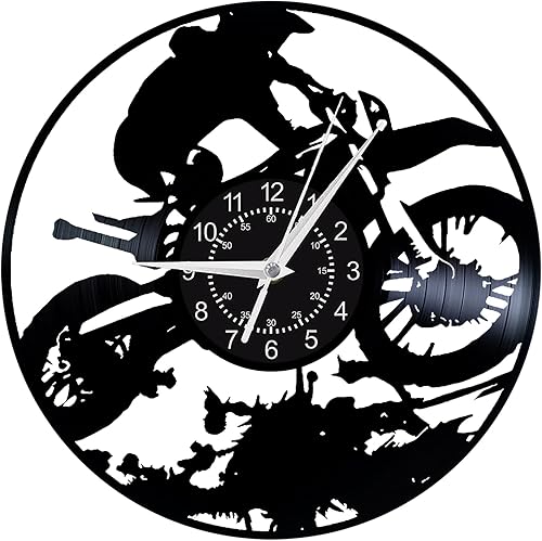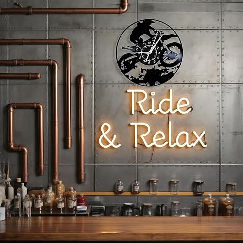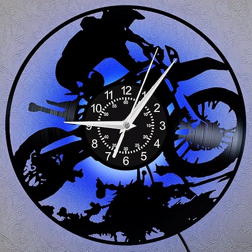 HONKKTHY Horloge murale décorative de course de moto, 30,5 cm, horloge murale en vinyle pour motocross, cadeau d'anniversaire pour garçon, art mural vintage pour homme (B avec LED)