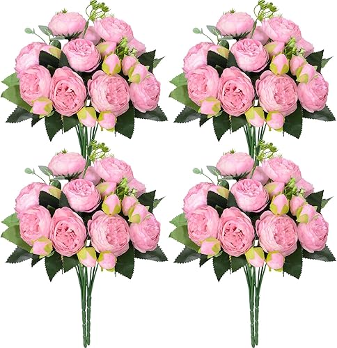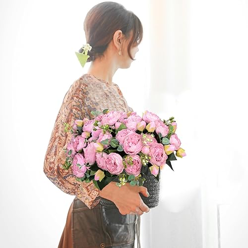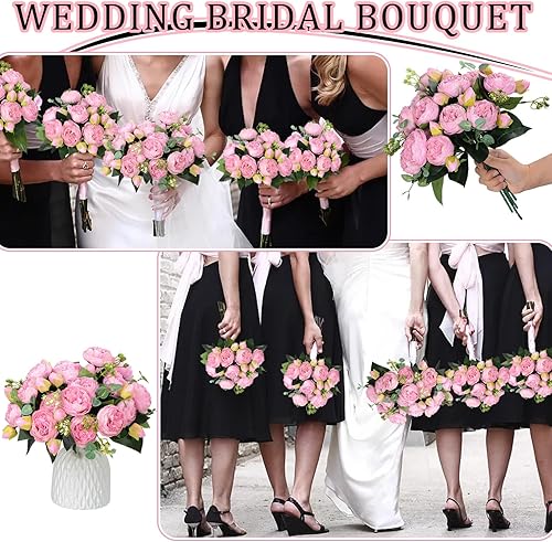 Lot de 8 fleurs de pivoine artificielles en soie pour mariage, fête, mariée, décoration de la maison (rose)
