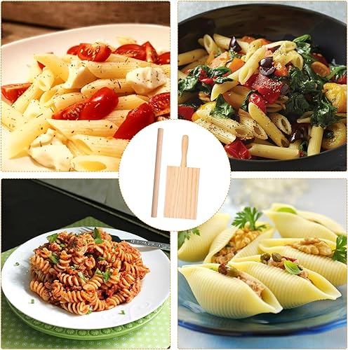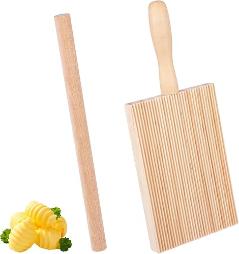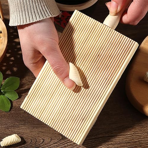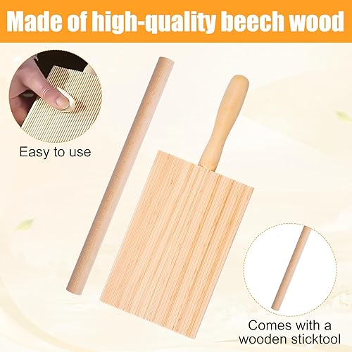 2 Pièces Planche à Pâtes, Palette En Bois De Gnocchi, Planche à Gnocchi, Gnocchis Au Bois, Pasta Boards, Planche pour Garganellis et Gnocchis avec 1 Bâton, pour Cuisine Maison Nouilles Outil