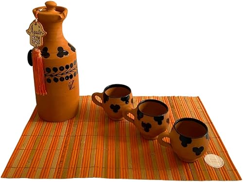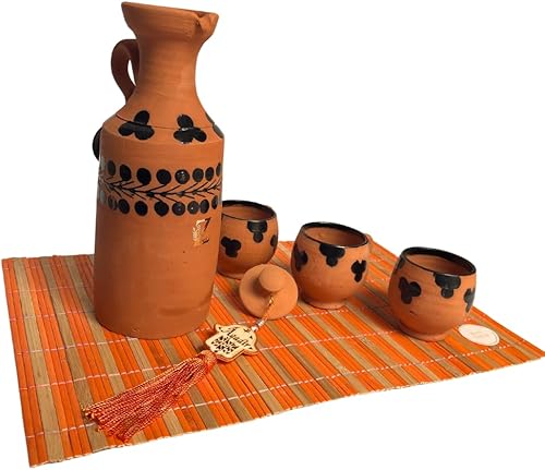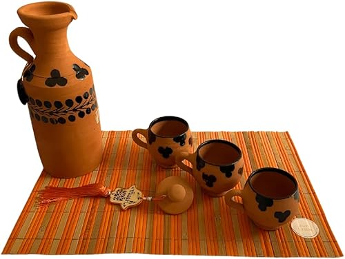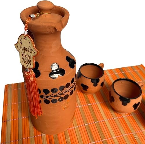 Set Jarre en Terre Cuite et ses 3 Tasses - Fabrication artisanale - Maitres Potiers de Marrakech