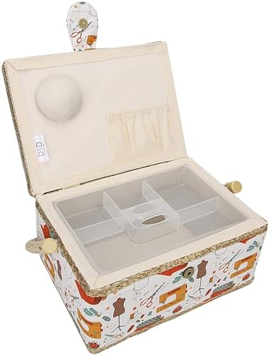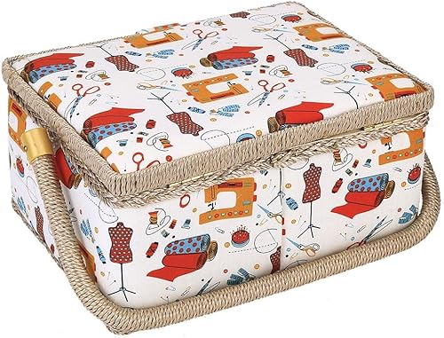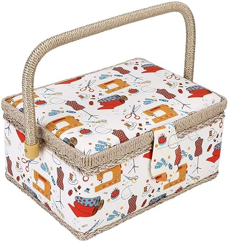 Oumefar Boîte à Couture Complète, Boite a Couture Vide Trousse Couture Boîte de Rangement Domestique Panier en Tissu Artisanat avec Poignée