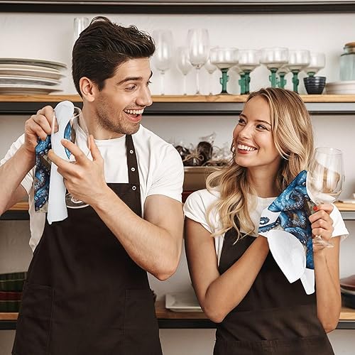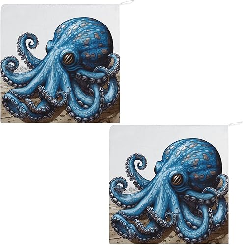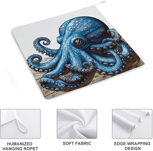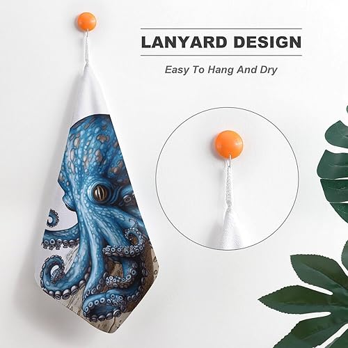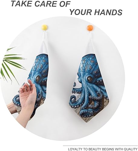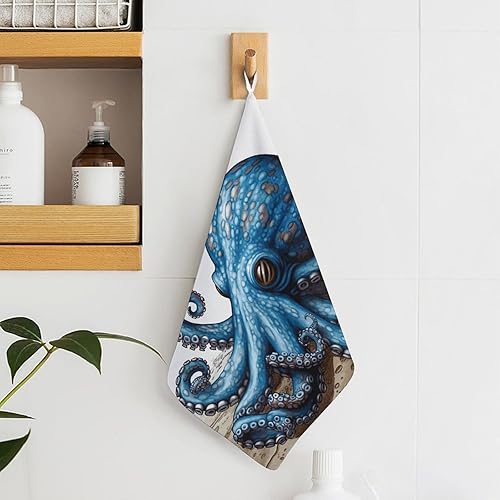BWLHCVN Essuie-mains à suspendre avec boucle - Imprimé pieuvre bleu - Petite serviette de voyage en microfibre douce pour cuisine et salle de bain