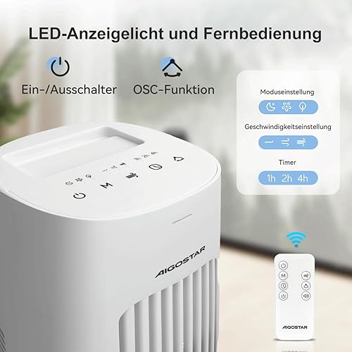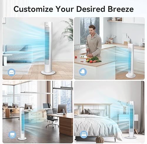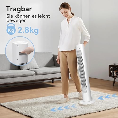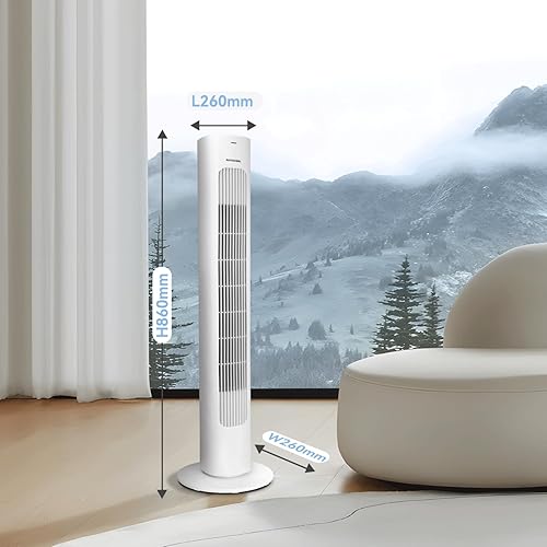Aigostar Robert - Ventilateur Colonne (86 cm),Silencieux, 3 Vitesses et 3 Modes,Oscillation 70°,Ventilateur Portable avec Minuterie 7H,Télécommande,50 W,Blanc