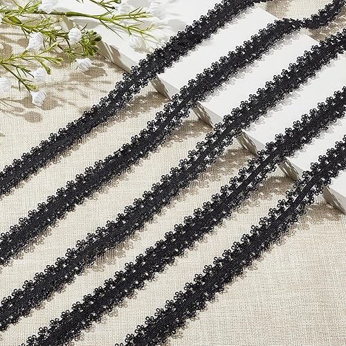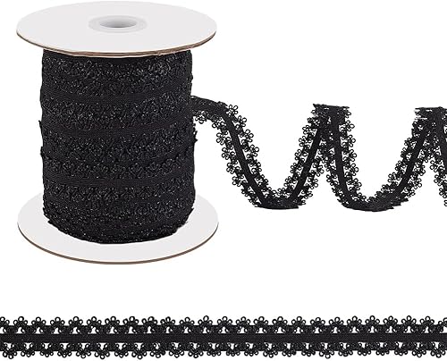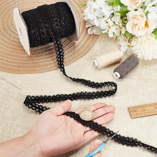 AHANDMAKER Bordure en dentelle picot stretch - 43,7 m - Sangle élastique avec bords à volants - Cordon crocheté - Pour le bricolage de lingerie - Noir