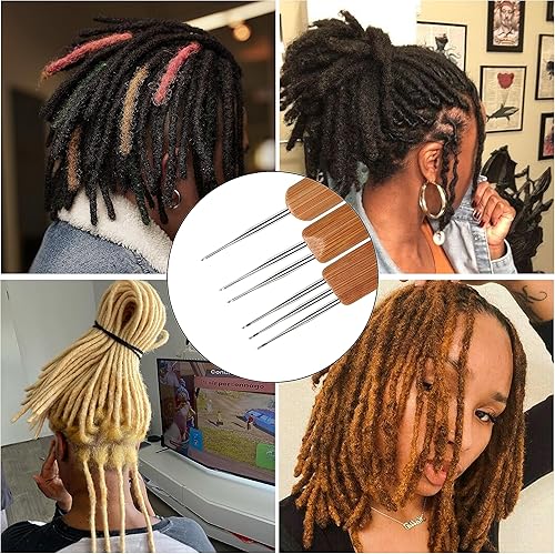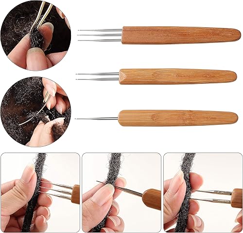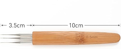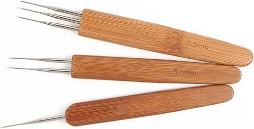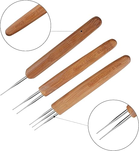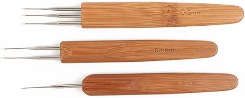 3 Pièces Aiguilles à Crochet Set, Dreadlock pour Cheveux Outil à Aiguilles pour Braid Craft, Manche en Bambou 0.5mm (1 + 2 + 3 Crochets)