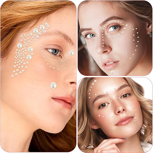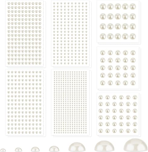 Lot de 2032 autocollants décoratifs à dos plat pour le visage, le maquillage, les yeux - 7 tailles différentes - 3/4/5/6/8/10/12 mm - Blanc