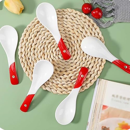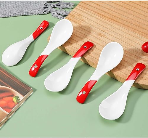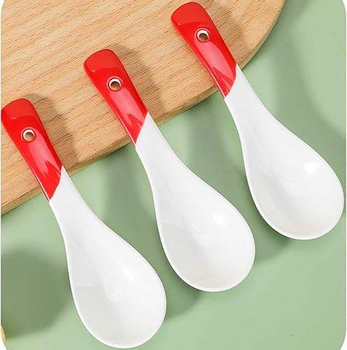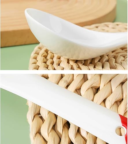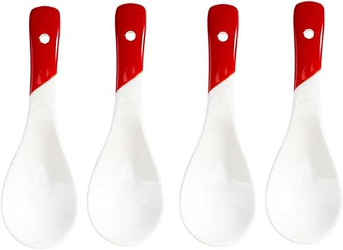 Cuillère à manger Cuillères à soupe asiatiques en céramique, ensemble de 4 cuillères à soupe Ramen, cuillères à soupe chinoises en porcelaine for nouilles Ramen, sauce au riz Udon Pho Scoop