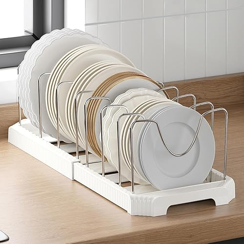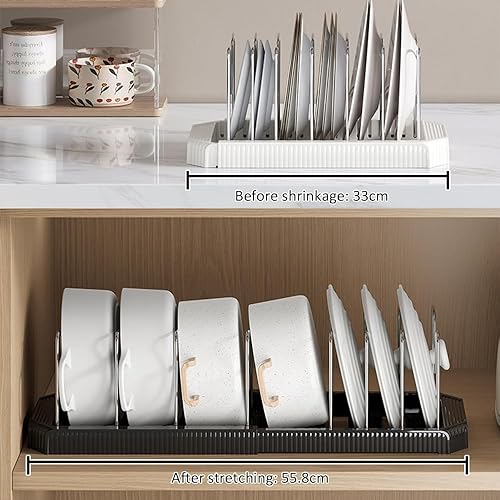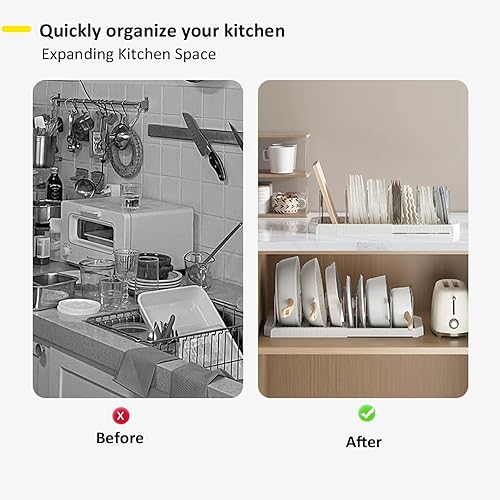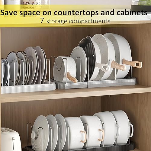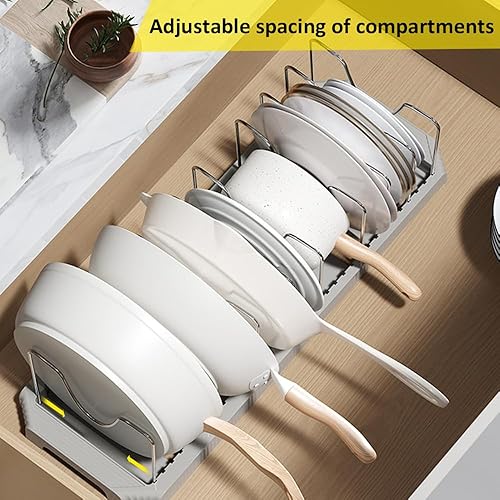 Rangement Poele et Casserole pour Tiroir Cuisine, Organisateur Casserolier, Range Couvercle avec 7 Compartiments Réglables, Porte-casseroles Support Extensible, Organisateur Casserole Tiroir Cuisine