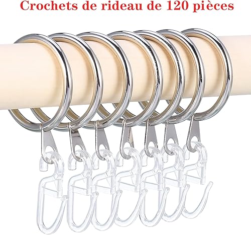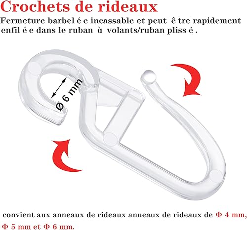 Xinzistar 120pcs Crochets de Rideau en Plastique Transparents pour Rail et Anneaux de 6mm