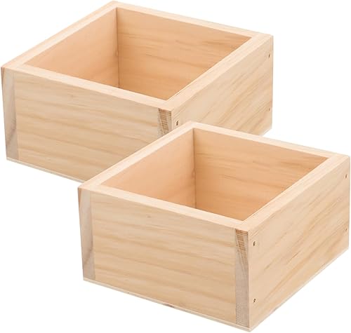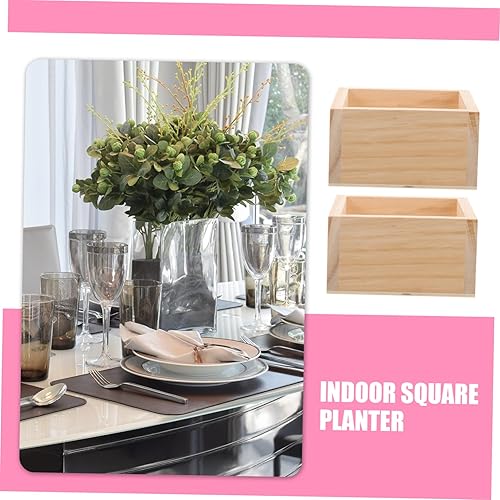 Vaguelly 2 Pièces pot de fleur en bois arrangement en forme de jardinière carrée planteur plantes decoration bureautique accessoires pot de fleurs au goût naturel vase en bois