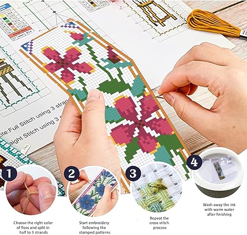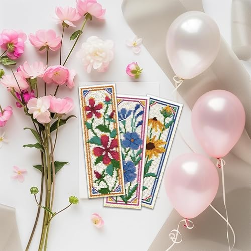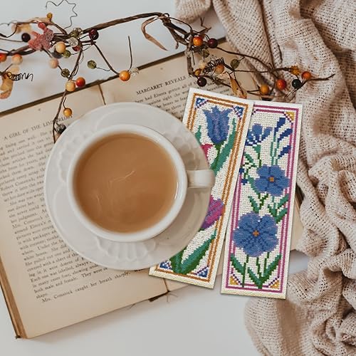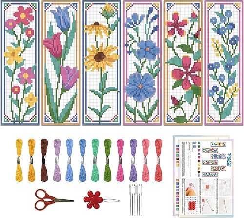 ORIGACH Kit de 6 marque-pages au point de croix pour débutants - Motif tournesols et tulipes - Broderie estampée - Broderie au point de croix avec instructions (français non garanti)