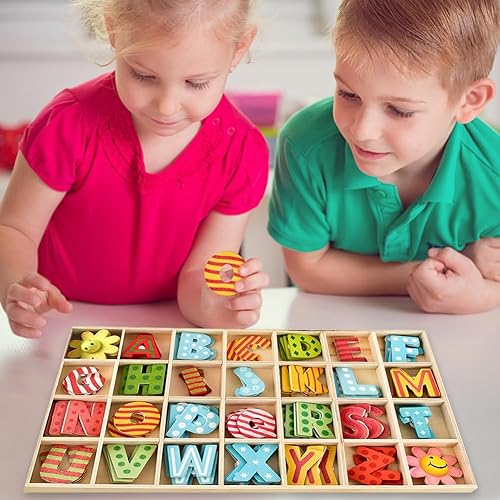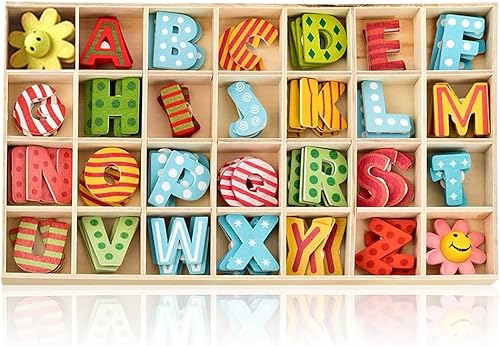 Lot de 108 PCS Lettres et Chiffres en Bois,Lettres En Bois Ensemble - avec plateau de rangement,Pour Travaux Manuels, Décoration de La Maison et Enseignement Pour Enfants