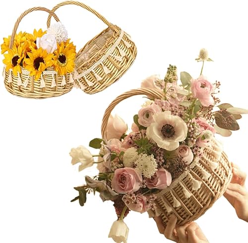 Vasemele Panier de Rangement Osier Petit Panier Mariage Panier Mariage Fleur Paniers Pique Panier Cadeau Mariage Rustique Panier Osier Rangement Salle Petit Panier Osier