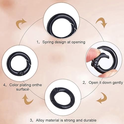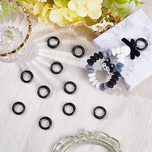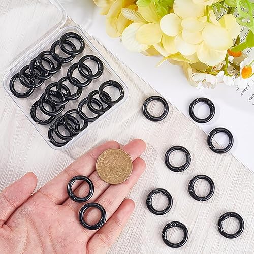 SOFPLATE 1 boîte de 30 Anneaux à Ressort Noirs de 20mm Mousqueton Rond Clip en Métal Déclencheur Porte Clés Clips en Alliage de Zinc Anneaux Toriques Boucles pour Porte Clés Porte Clés Sacs à Main La