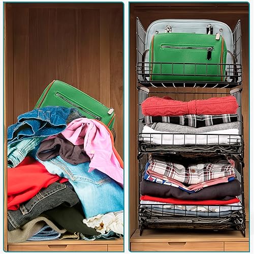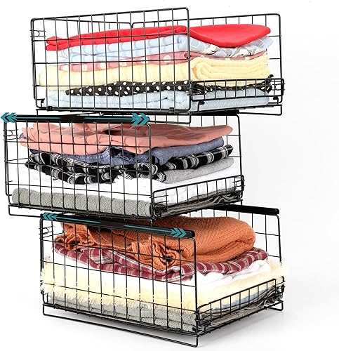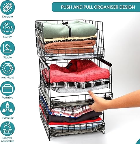 Belle Vous Organisateur Coulissant à 3 Niveaux - Tiroir de Placard ou Armoire - Panier de Rangement Empilable - Bac de Dressing pour Vetement - Boite Coulissante et Pliante