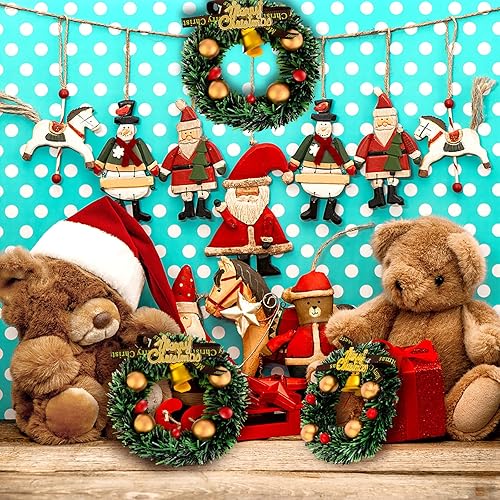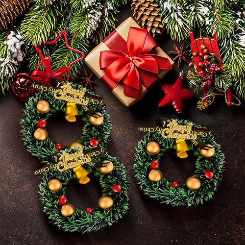 COBEE Lot de 4 couronnes Noël miniatures avec clochettes, accessoires maison poupée 1:12, mini couronne vacances, décoration Noël, modèle scène miniature, fête