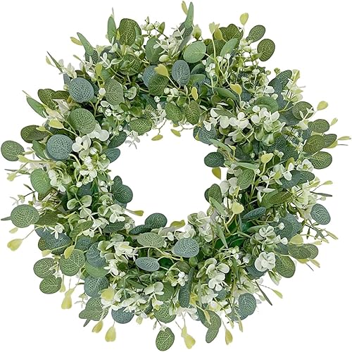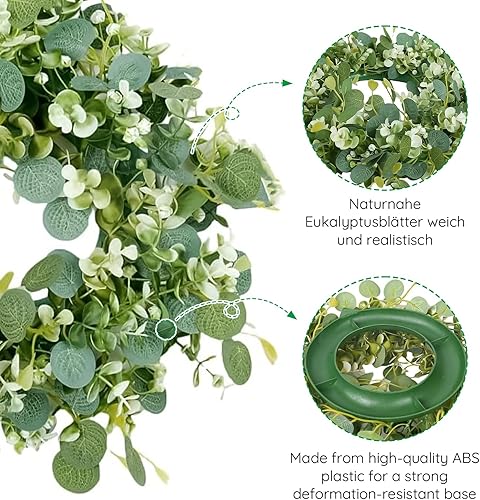 HNCOWPTU Couronne d'eucalyptus faite à la main - Décoration de printemps - Fleurs séchées - Couronne pour porte d'entrée, mariage et accessoires d'intérieur