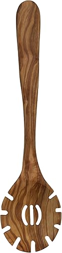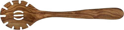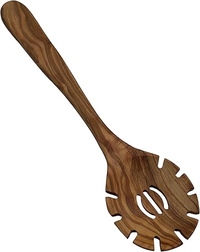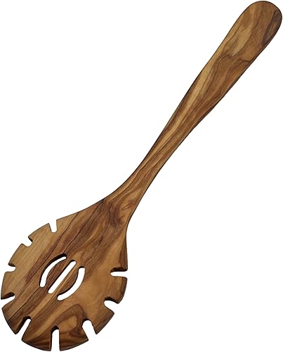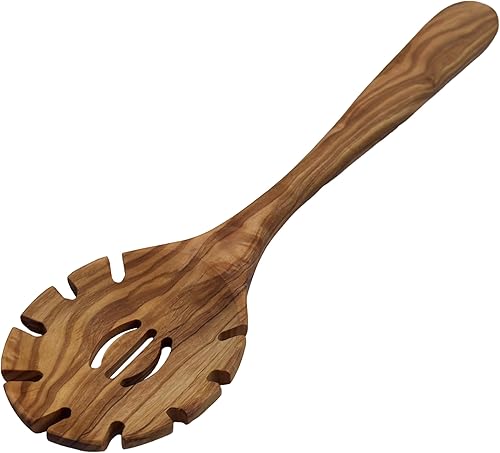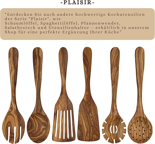 Cuillère à spaghetti « Plaisir » en bois d'olivier – Cuillère à pâtes ronde fabriquée à la main – Ergonomique et durable