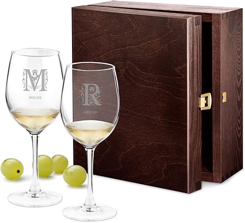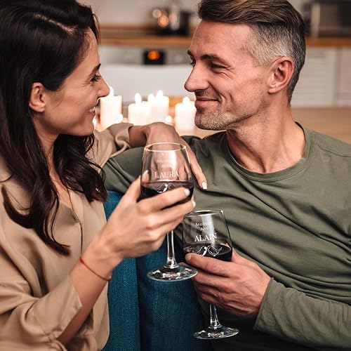 Maverton 2 Verres à Vin en Cristal - 350 ml - Verres Personnalisés pour le couple marié - Cadeau d’anniversaire pour chaque Couple - Petite Verre pour parents - Parfait