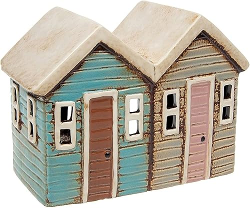 Village Pottery Photophore en Forme de Cabine de Plage, Crème