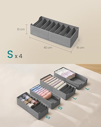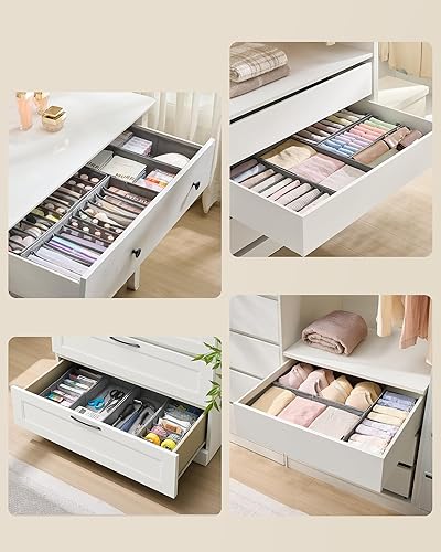 SONGMICS Lot de 4 séparateurs pour tiroirs HEMNES et MALM d'IKEA, avec séparateurs, organisateurs de sous-vêtements pliants, 40 x 16 x 10 cm, gris taupe RUS014G01