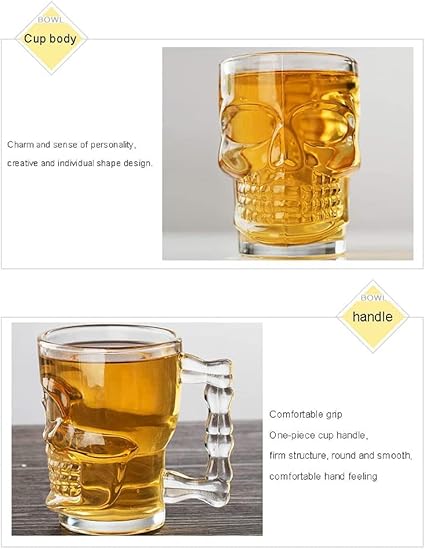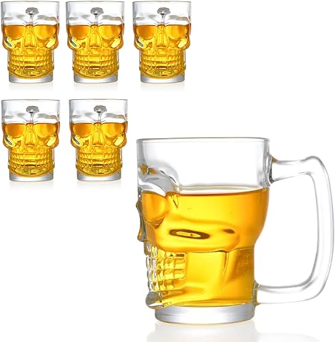 Oceano Gobelets crâne verre bière chope Shot Chupito tasse whisky vodka amer vin bière rhum spiritueux idée cadeau anniversaire fête des pères halloween bar pub skull crâne (6 pièces 360 ml)