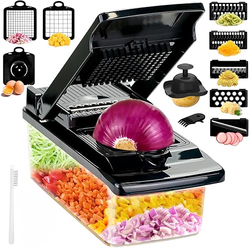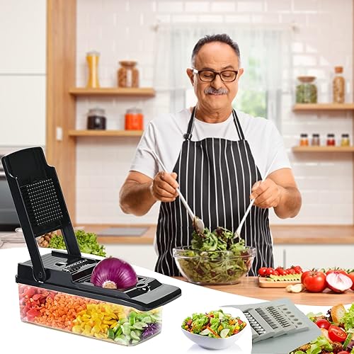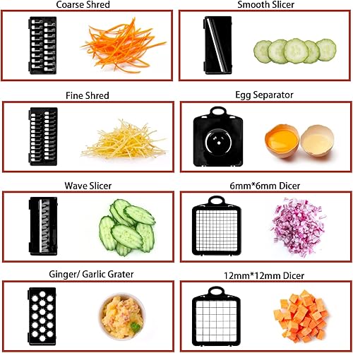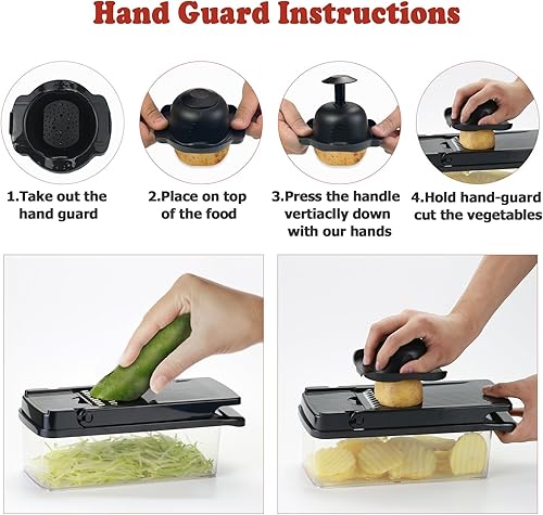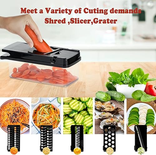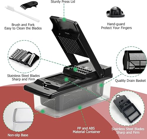 Coupe legumes Multifonctions,T-GOGO 15 en 1 Mandoline de Cuisine Professionnelle,Coupe Legumes Manuel avec 7 Lames, Decoupe Legumes Coupe Frite pour Carotte,Pomme de Terre,Oignons,Tomates (Noir)