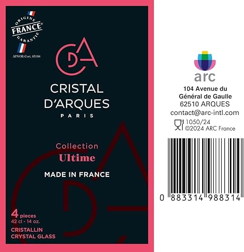 Cristal D'Arques Ultime Boîte de 4 verres à vin 42 cl Compatible réfrigérateur 100% hygiénique