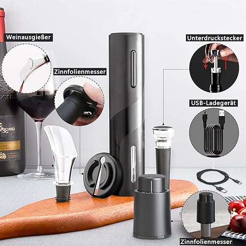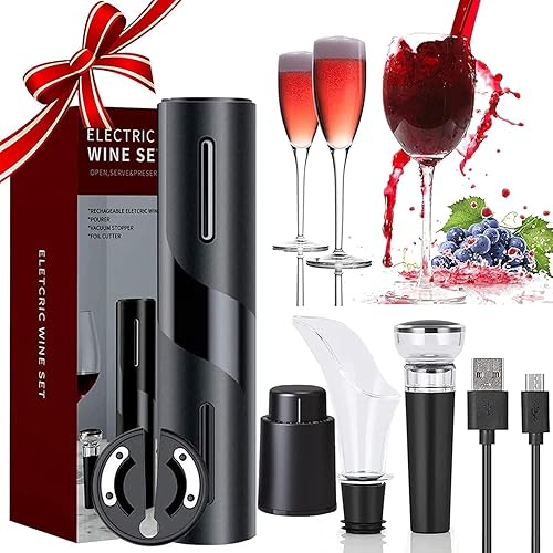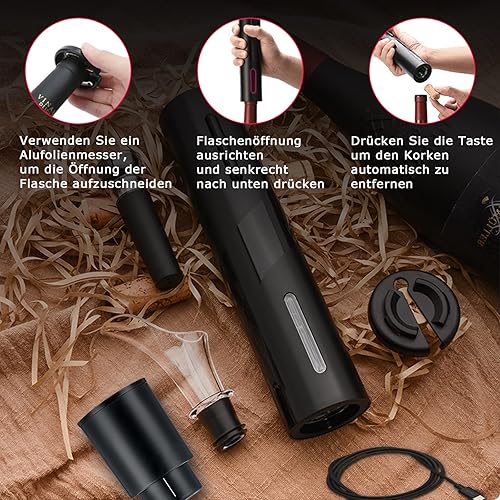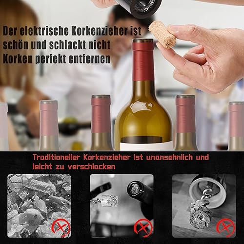 WenZBros Tire Bouchon Électrique,Ouvre Bouteille Professionnel pour Vin Sans Fil Décapsuleur Automatique avec Coupe-Capsule,pour la maison, le restaurant, les fêtes, comme cadeau pour la famille