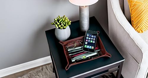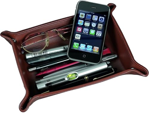 ALASSIO 52005 – Bol à ustensiles en Cuir, Plateau en Cognac, Marron, Bol env. 16 x 10 x 4 cm, Plateau de Rangement pour Petites pièces, Bol en Cuir Vide pour Bureau et Console