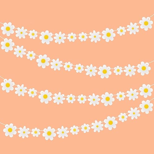 4pcs Guirlande Daisy, Jolies Décorations Fête Marguerites Mignonnes Bannières Fête Marguerite Printemps Bannières Fleurs Marguerite Guirlandes Marguerites pour Anniversaire Party