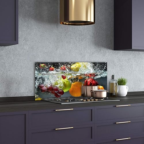 Tulup Crédence de Cuisine 140x70cm Dosseret en Verre Fond de hotte Verre de sécurité trempé Splashback Guard - Nourriture et Boissons - Multicolore - Fruits Et Légumes