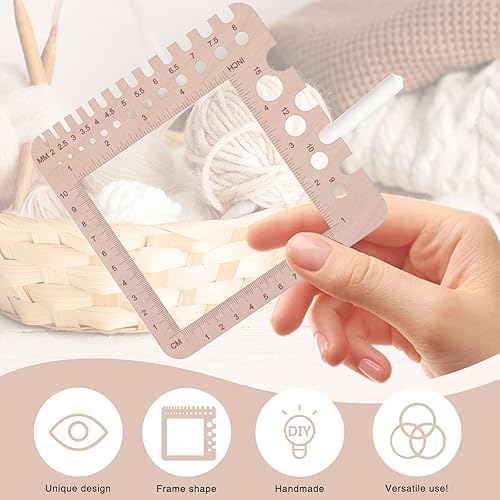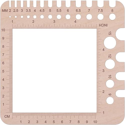 Knitting Needle Gauge - Règle pour chaussettes - Pour aiguilles à crochet - Carte de contrôle carrée en bois - Outil de mesure du degré de tricot - Épaisseur du fil : 15 x 15 cm