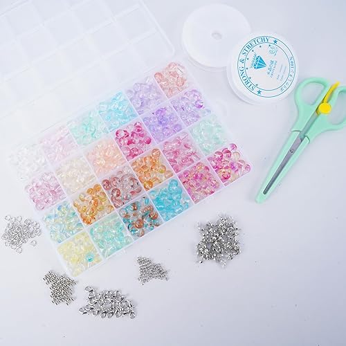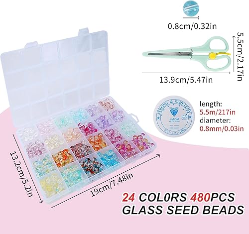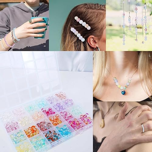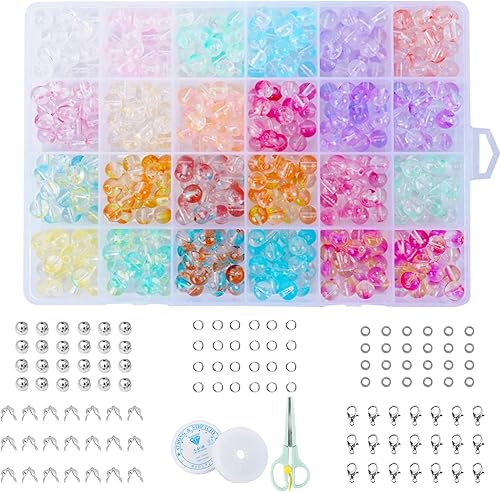 Zythrem 8mm Perles 480 Pièces Perles pour Bracelet Kit Bracelet Perle Fabrication de Bijoux Perles Bracelet DIY Kit Perle Perles Enfant + 50 Pièces Positionner les Perles